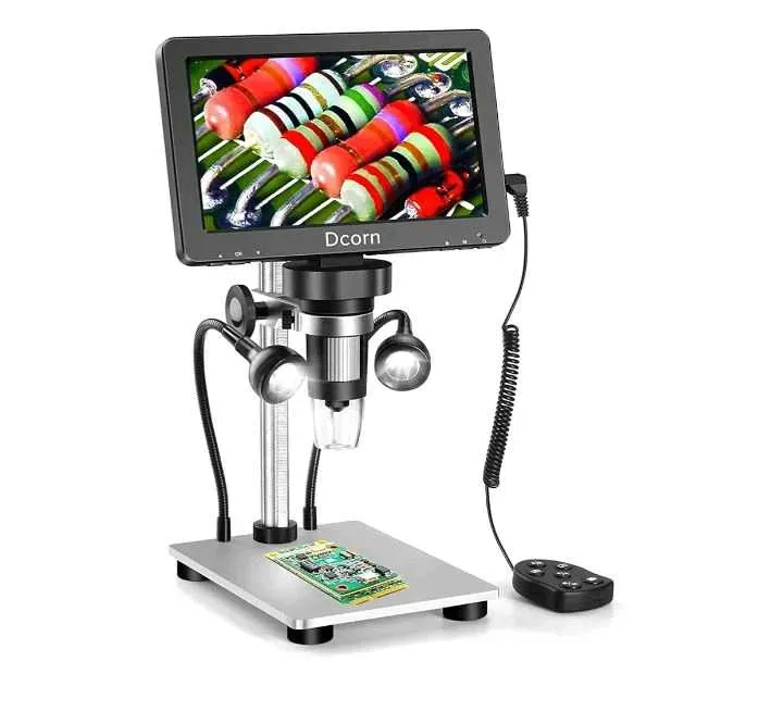 Microscopio digital de 7 pulgadas 1200X, Dcorn 12MP 1080P Microscopio de foto/video con tarjeta TF de 32 GB para adultos, soporte de metal, control remoto con cable, 10 luces de relleno LED, vista de PC, compatible con Windows/Mac